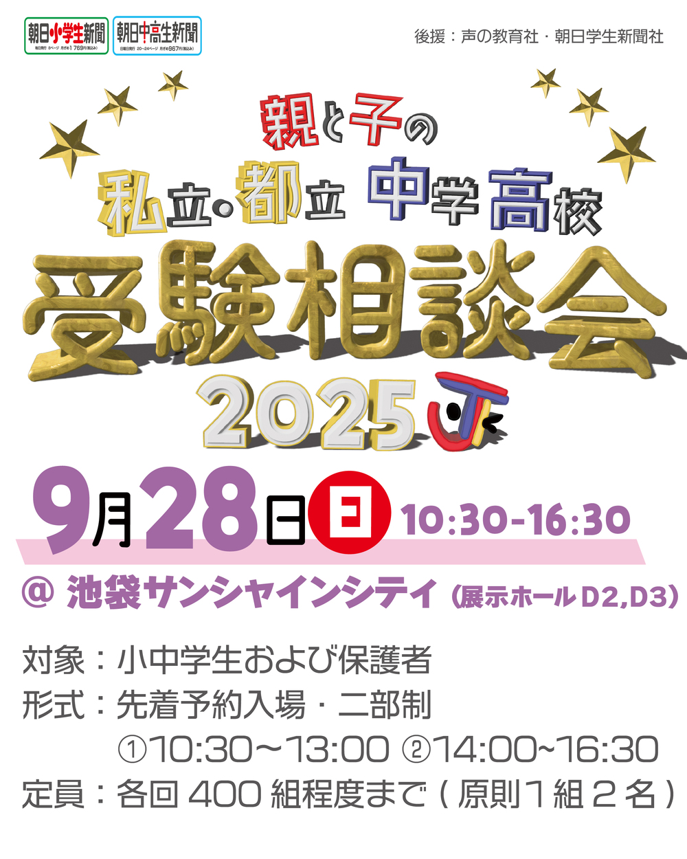 毎年恒例の受験相談会イベント東京私塾協同組合主催「親と子の『私立・都立中学高校受験相談会』」。